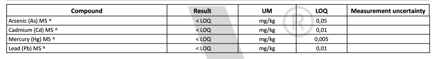 Per ogni metallo analizzato, il valore risulta inferiore al limite di quantificazione.